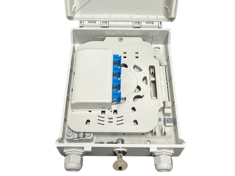 The wall-mount fiber optic termination box is an ideal solution for fiber optic cable termination. Made from plastic, this box is lightweight and durable, providing easy installation and maintenance. Designed to ensure the secure and organized termination of your fiber optic network.