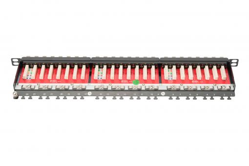 DIGITUS Dolu Patchpanel CAT6A STP 0,5U, 10 Gbps hızındaki Ethernet bağlantılarını destekleyen, yerden tasarruf sağlayan 24 portlu bir patchpaneldir. Tam koruma sağlayarak elektromanyetik paraziti engeller.